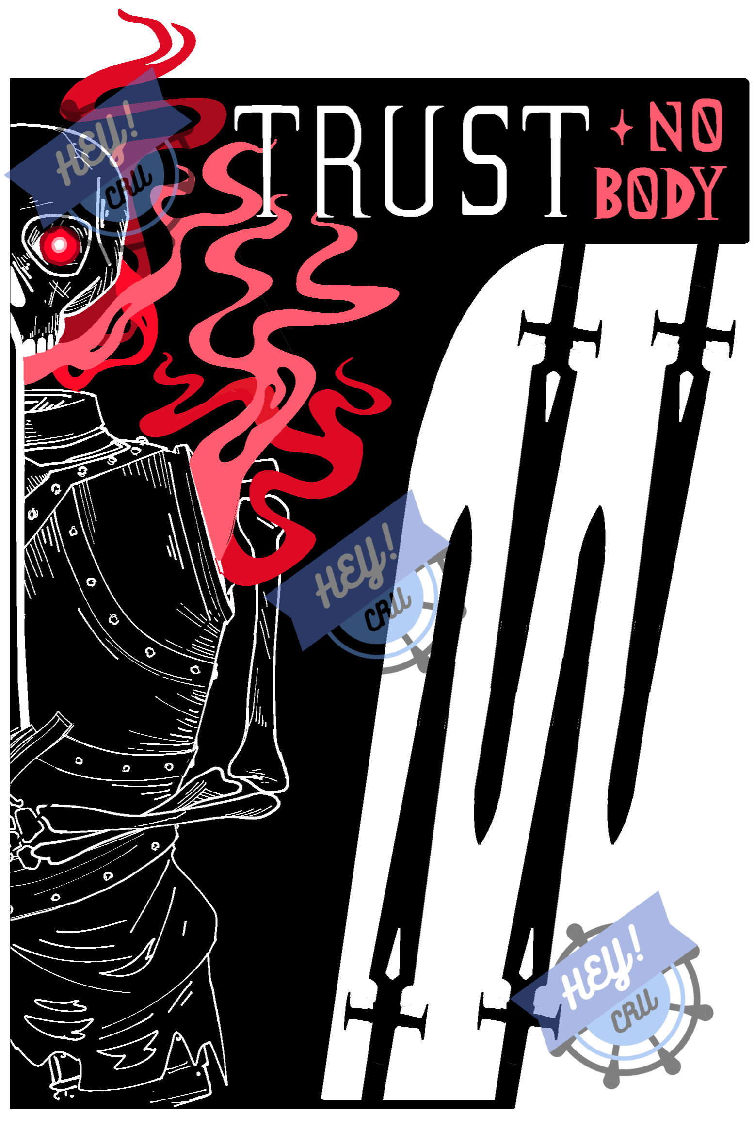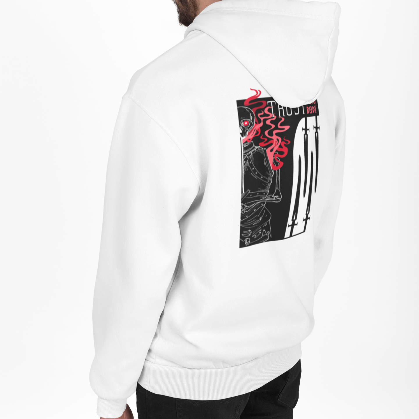 The UNDEAD Zip Hoodie is your armor for the in-between. Featuring a spectral figure stitched from shadow, blood-red tendrils of corrupted soul, and the motto "Trust No Body", this design bleeds with post-mortem power.